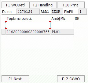 Yuxarıdakı ekran görüntüsü məhsul toplamanın ilkin, palet yaratma ekranıdır. Bu addımda, toplanacaq məhsulu nəyə (adətən palet olur) yığacağımıza qərar verərək, həmin birimi sistemdə yaradırıq. Biz, nümunə olaraq 11020000000200000765 nömrəli 1 ədəd palet yaratdıq. Növbəti addımlarda təslimatdakı məhsulları həmin paletin içinə toplayıb, paleti paketləyib, 1 palet formasında müştəriyə göndəririk.