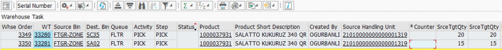 “Handling Unit” yazılan yerə mal girişi edilən palet nömrəsini oxuduruq.