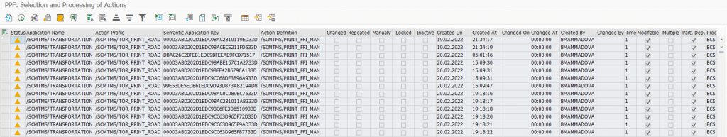 Yuxarıdakı şəkildə gördüyünüz görüntü SPPFP əməliyyat kodundan PPF məlumatlarıdır. SAP EWM-də təslimatın məlumatlarını çap etmək, mesaj və ya faks göndərmə üçün istifadə edilən əməliyyatlar tək bir ekrandan izlənilir. Əməliyyatlar əvvəlcədən planlı və ya avtomatik şəkildə edilə bilər.