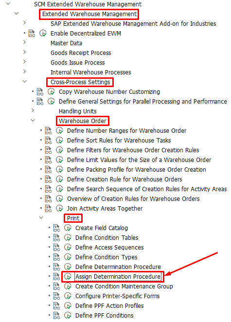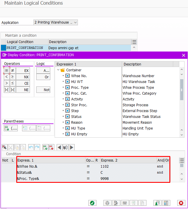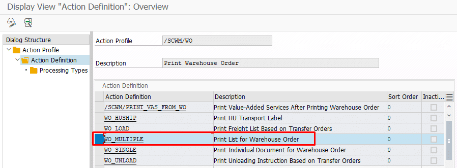 - /SCWM/PRWO5 əməliyyat koduna daxil olaraq sistemin çap etmə məntiqini daxil edirik.