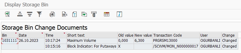 Açılan pəncərədə adresdə maksimum həcm və stoklanma üçün blokdan çıxarılmasında dəyişikliyi görə bilərik. Raporda əvvəlki dəyər və hansı dəyərlə dəyişildiyi, hansı ekrandan dəyişildiyi, kimin dəyişdiyi və s. görmək mümkündür.