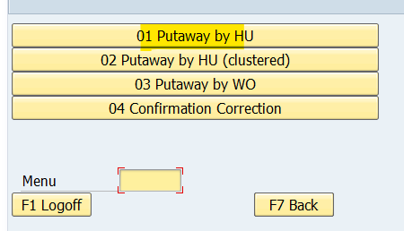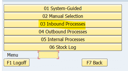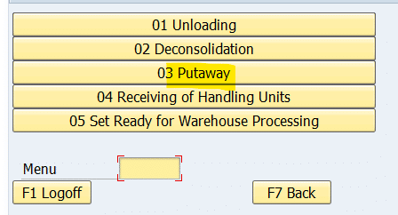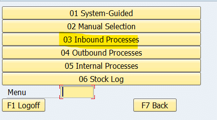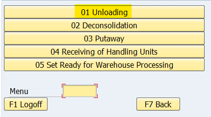 Mal girişini tamamladıktan sonraki adım, istisna kodunu kullanarak depo siparişleri bölmek. Bunun için tekrar el terminaline girip aşağıdaki adımları takip ediyoruz.